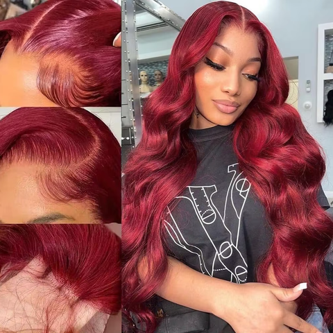 Bosque Beauty วิกผมปิดลูกไม้13x4เส้นผมมนุษย์คลื่นสีไวน์แดงเบอร์กันดีความหนาแน่น200%