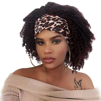 วิกผมลอนข้าวโพดสีน้ำตาลแบบพันผ้าโพกหัวสำหรับผู้หญิงวิกผมหยิกสั้น