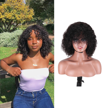 Short Curly Bob Human Hair Wig With Bangs 200% Density Natural Black Color BOSQUE Beauty