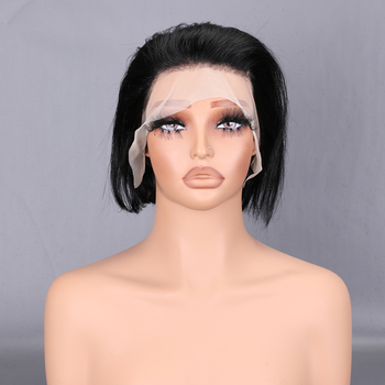 13x4 Lace Front Human Hair Wig 200% Density Short Bob Natural Black BOSQUE Beauty