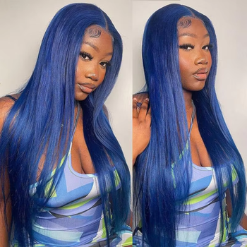Peluca con malla frontal azul 13x4 Cabello humano 200% Densidad Resistente al calor BOSQUE Beauty