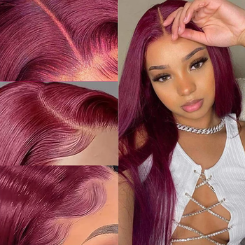 Peluca con malla frontal de Color Burdeos de alta densidad 200% 13x4 cabello humano largo y recto Peluca de moda rojo vino BOSQUE Beauty