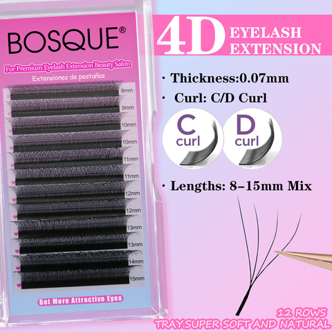 Bosque יופי 4d ריסים הרחבות w בפורמט שלפוחית היברידית 8-15 מ "מ